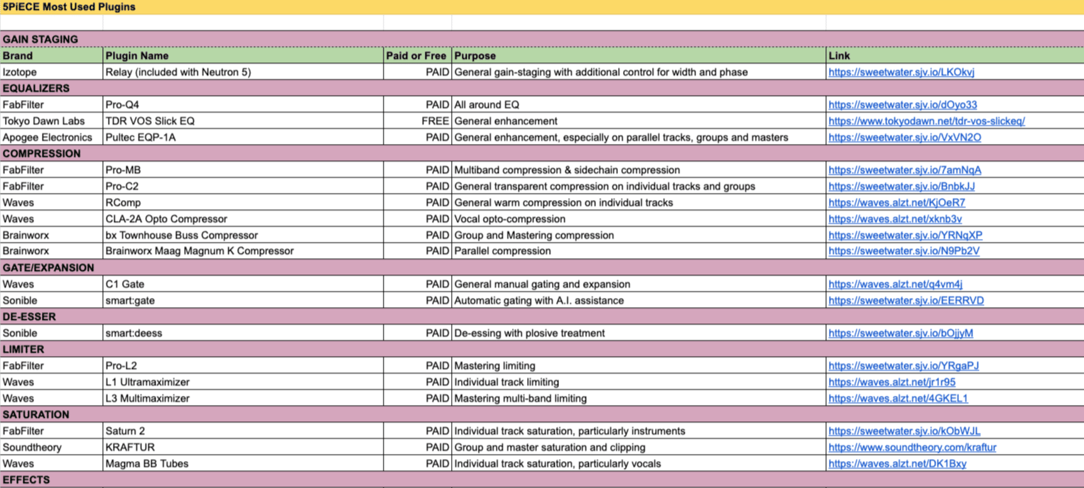 Compiled after analyzing hundreds of mixing and mastering sessions to see what I use the most - including FREE and PAID plugins. Simply enter your information and I'll send a digital version to your email for FREE.
